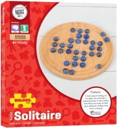 Descubre la diversión atemporal con el solitario de madera BIGJIGS TOYS. Las relucientes canicas azules y el tablero circular cuidadosamente trabajado crean un elegante juego de lógica que pondrá a prueba tu ingenio y tu paciencia. El objetivo es, saltando canicas una sobre otra, dejar una sola canica en el tablero.