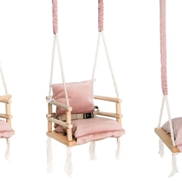 Gracias a su aspecto universal en color rosa, el columpio es ideal para la habitación infantil y refuerza el estilo escandinavo del interior. Es perfecto para un balanceo tranquilo y la diversión de los niños que ya saben sentarse por sí solos.