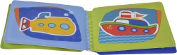 Alegres ilustraciones de coches, barcos, submarinos y aviones desarrollan el vocabulario y la percepción visual.