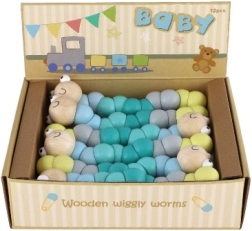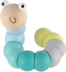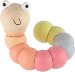 Este gusano/oruga de madera está formado por segmentos de colores lisos que se enlazan entre sí y permiten doblarlo fácilmente en distintas formas. Gracias a sus agradables tonos pastel y a su carita sonriente, los niños se encariñarán con él de inmediato. Ideal para un juego divertido y el desarrollo natural de la motricidad fina y la creatividad.