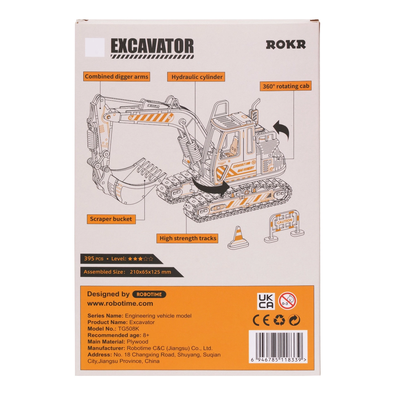 El modelo de excavadora de madera de la marca ROBOTIME sumerge a niños y adultos en el mundo de la maquinaria de construcción. Con detalles realistas, un brazo funcional y una cabina giratoria, disfrutarás no solo del montaje, sino también del posterior juego y exhibición. El set incluye instrucciones detalladas, para que puedas montar el modelo fácilmente en aproximadamente 2,5 horas.