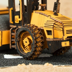 Este creativo kit de construcción le introduce en el mundo de la maquinaria de obra. El modelo de rodillo compactador de madera ofrece un aspecto auténtico y elementos funcionales, por lo que se convierte no solo en una bonita decoración, sino también en un juguete plenamente funcional. Las piezas están cortadas con láser con precisión y encajan a la perfección.