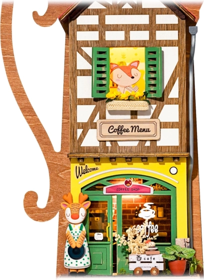 El contenido del paquete incluye todo lo necesario para el montaje, como piezas de madera, decoraciones, pinturas, pegamento, pincel y pinzas. La iluminación es fácil de ajustar y se pone en funcionamiento rápidamente mediante un interruptor. Las pilas micro AAA (2xAAA) no están incluidas. Se entrega con instrucciones detalladas.