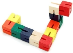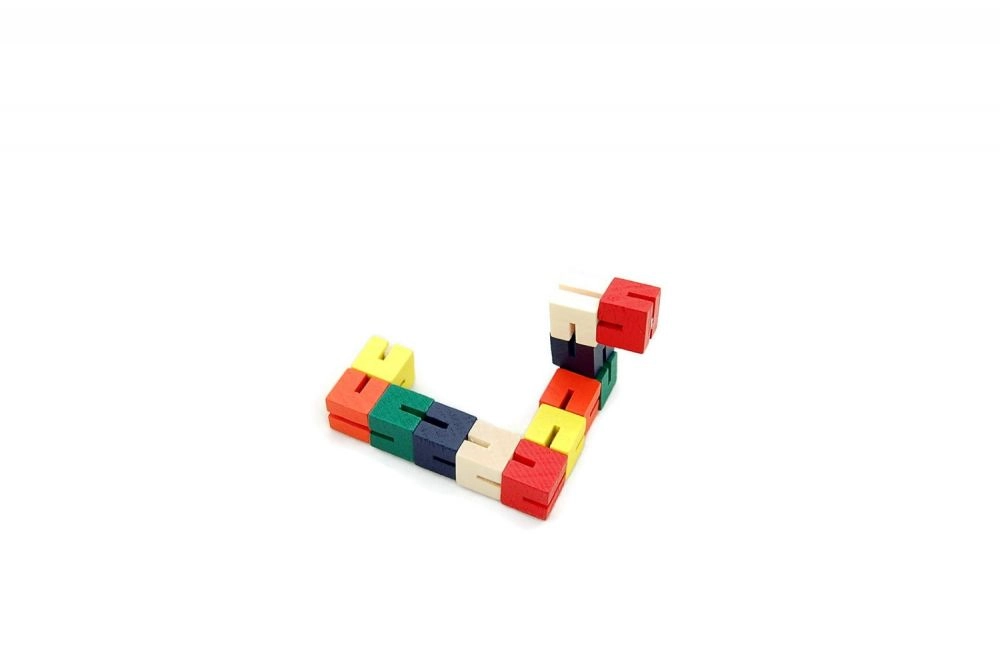 El rompecabezas de madera colorido en forma de serpiente ofrece innumerables maneras para que los niños exploren su creatividad. Al girar y voltear los segmentos individuales, desarrollan destreza y motricidad fina. El juguete es ideal para llevar de viaje; gracias a su tamaño de bolsillo, los niños pueden tenerlo siempre a mano. Los bloques de madera están unidos firmemente por una goma elástica, lo que garantiza su resistencia y seguridad.