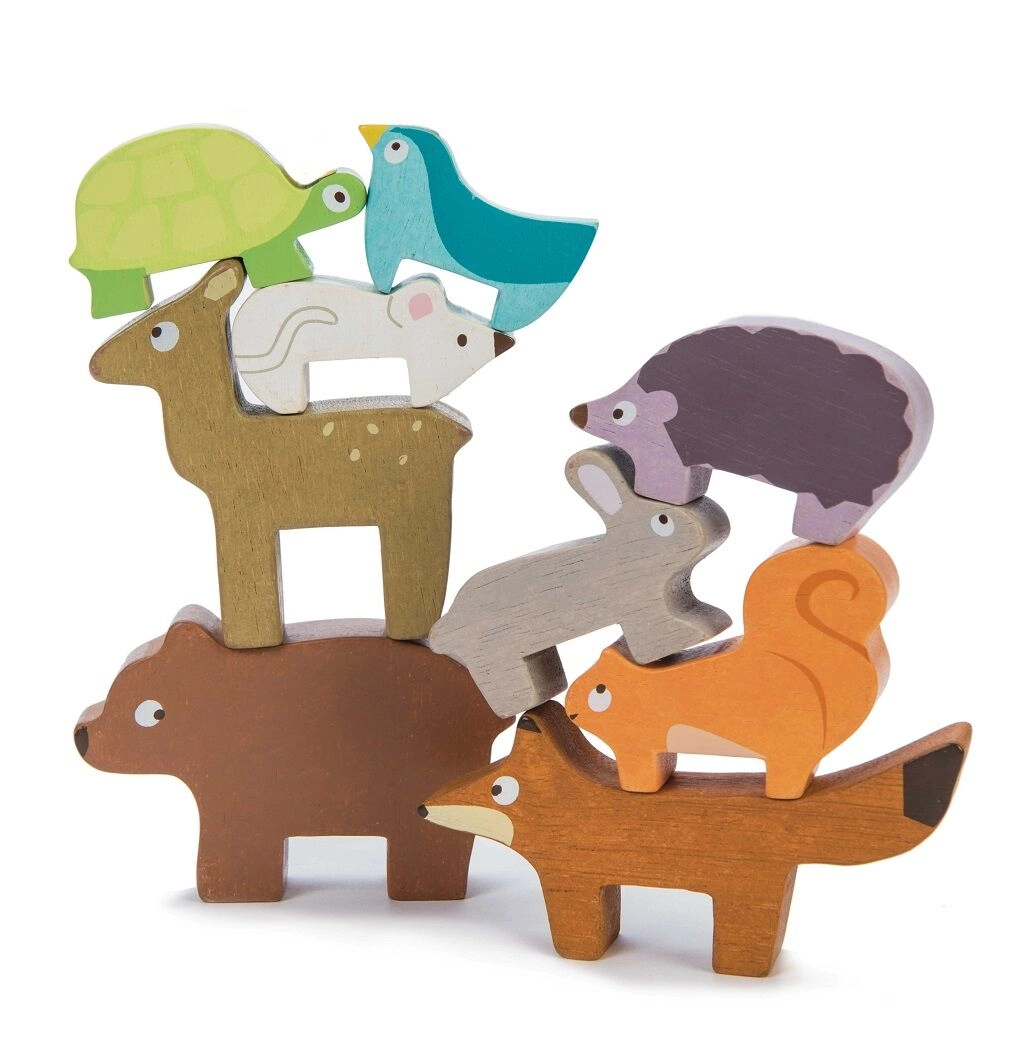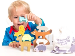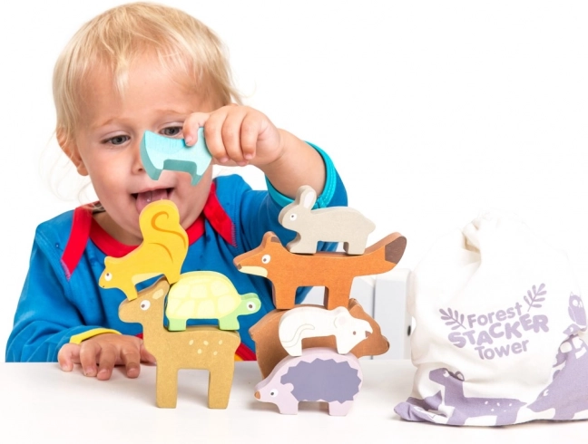 Apilar los animales en una torre estimula la coordinación mano-ojo, la precisión del agarre y el juego imaginativo. Actividad ideal para los más pequeños.
