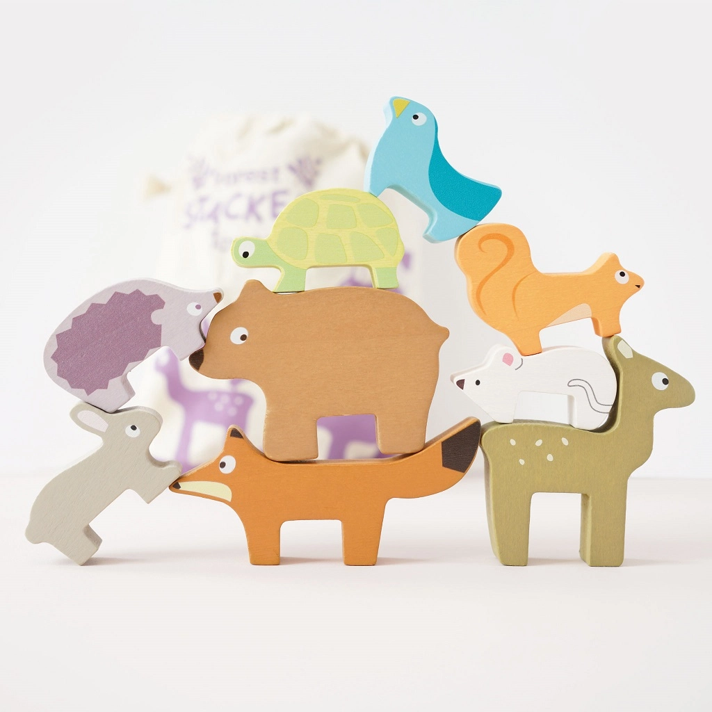 Este rompecabezas de madera con animales del bosque de la colección PETILOU está diseñado para los pequeños exploradores. Los niños pueden apilar el zorro, el conejo, el erizo, el oso, el ratón, la tortuga, la ardilla, el cervatillo y el pajarito en una divertida torre, practicar el equilibrio y observar cómo la torre crece… y a veces se cae con una sonrisa. Gracias a su agradable tamaño, las figuritas se adaptan perfectamente a las manos infantiles.