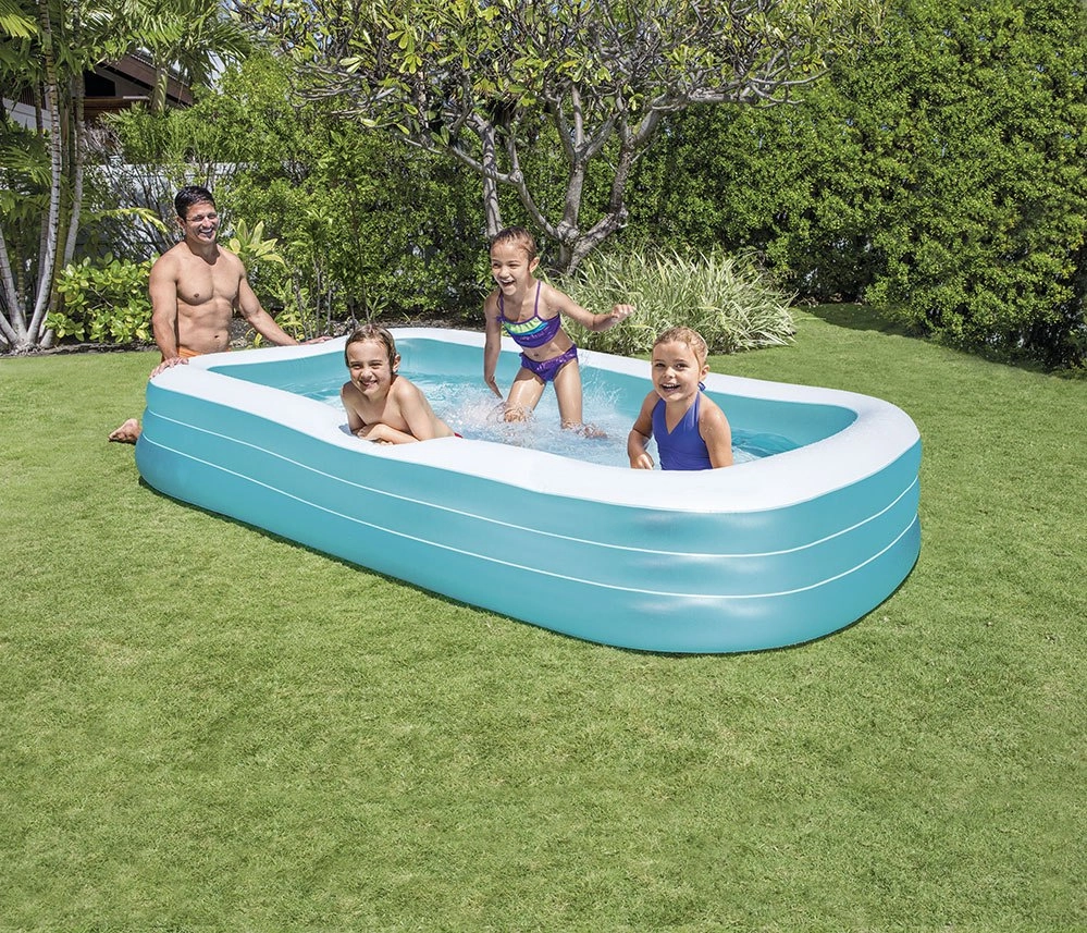 Asegura una estupenda diversión veraniega con la piscina inflable INTEX Swim Center. Esta piscina espaciosa y fácil de usar está diseñada para exteriores y, gracias a sus dimensiones de 305 x 183 x 56 cm, ofrece espacio suficiente para toda la familia.