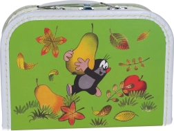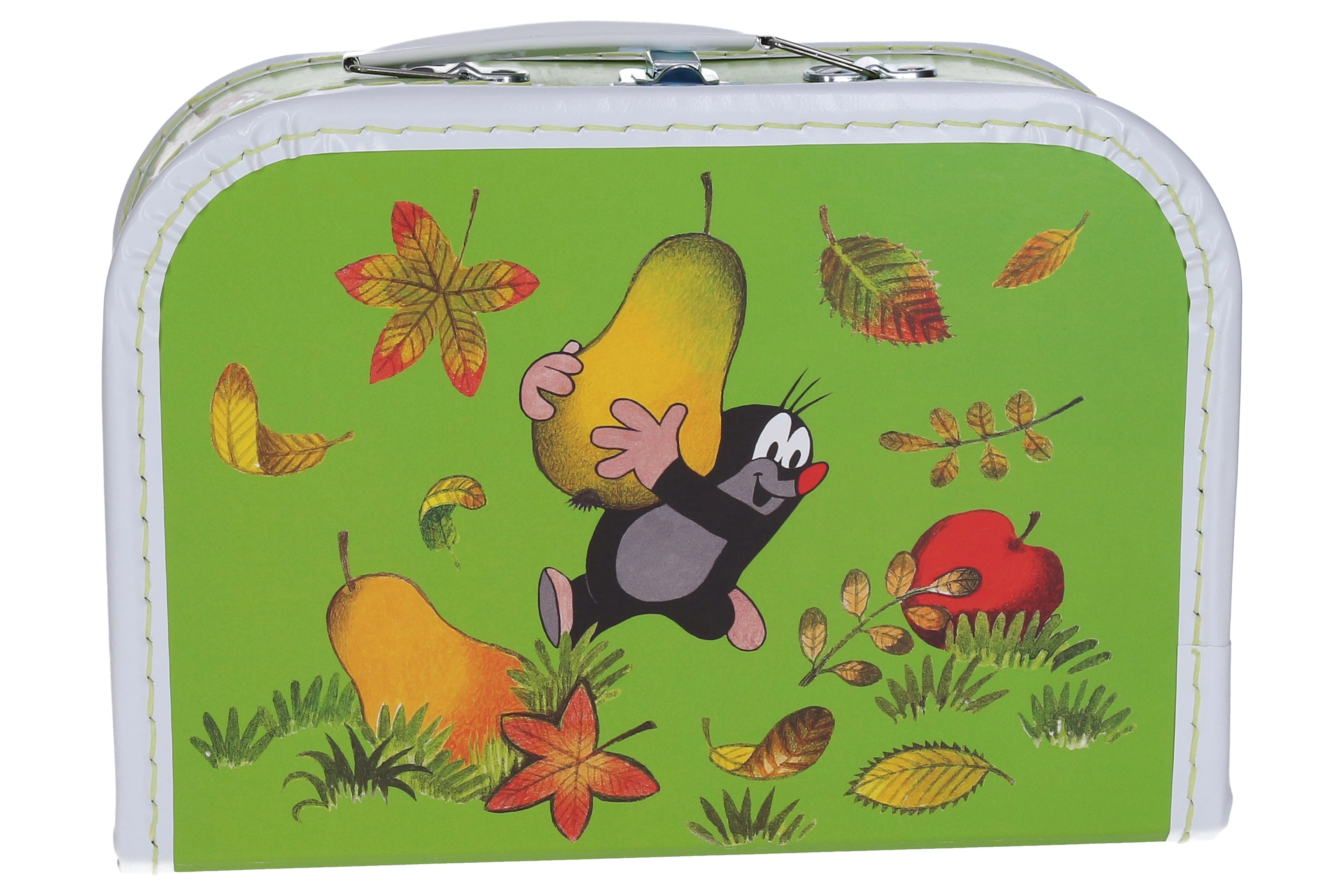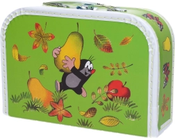 Adorable maleta infantil con el motivo de KRTEČEK en color verde claro y tamaño compacto de 25 cm. Ideal para guardar pequeños objetos, juguetes y tesoros en casa, en la guardería y de viaje.