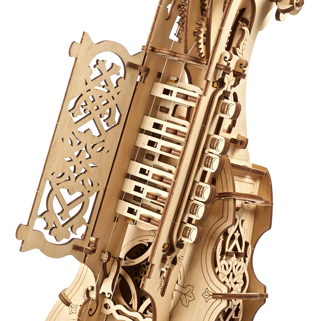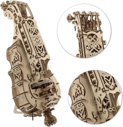 Este singular kit de madera combina el entretenimiento del modelismo y la experiencia musical en uno. Inspirada en el arte medieval, la zanfona de Ugears incorpora el movimiento de un tren epicicloidal, ornamentos decorativos y, sobre todo, una tocabilidad real: haces sonar el instrumento girando la manivela, afinas con clavijas dotadas de engranajes reductores y controlas la altura del sonido con seis teclas.