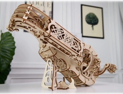 Las 292 piezas, cortadas con precisión por láser a partir de contrachapado de calidad, encajan sin pegamento. Los ornamentos decorativos y los engranajes a la vista la convierten en una pieza llamativa.