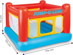 Brinda a los niños diversión sin fin con el castillo saltarín INTEX Jump-O-Lene. Esta colorida casita inflable es ideal para niños a partir de 3 años y ofrece salto seguro gracias a sus paredes de malla, material resistente y estructura estable. Con unas dimensiones de 174 × 174 × 112 cm y una capacidad de carga de hasta 54 kg, es perfecto para uso interior y exterior.