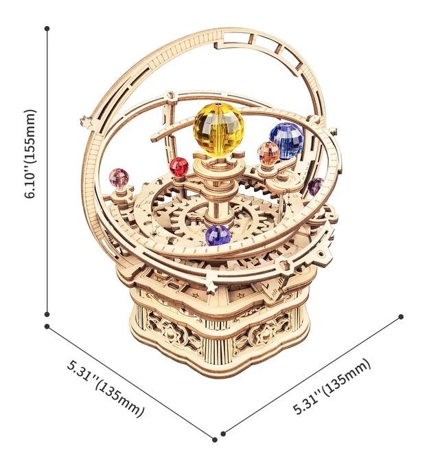 Este modelo mecánico 3D es ideal para creadores curiosos, aficionados a la astronomía y amantes de los accesorios de diseño. Durante el montaje desarrollas la imaginación, el sentido del detalle y el pensamiento lógico. Gracias a su melodía envolvente y su aspecto decorativo, el modelo se convertirá en un elemento destacado de cualquier interior.