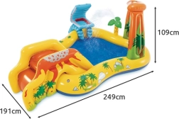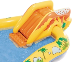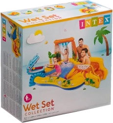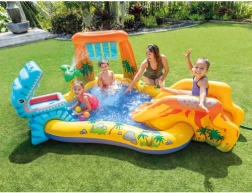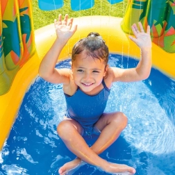Convierte los días calurosos en diversión total. El parque acuático inflable INTEX ofrece cinco atracciones en una: una piscina poco profunda para chapotear, un tobogán suave con llegada acolchada, una refrescante fuente y cortina de agua conectadas a la manguera, y también divertido baloncesto acuático con pelotas de colores. Gracias a sus dimensiones universales, es ideal para jardín, terraza e incluso para llevar a la playa.