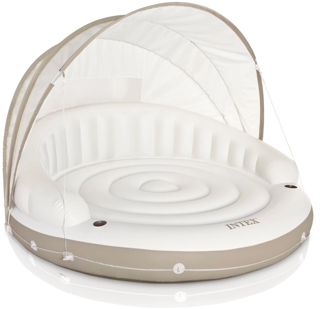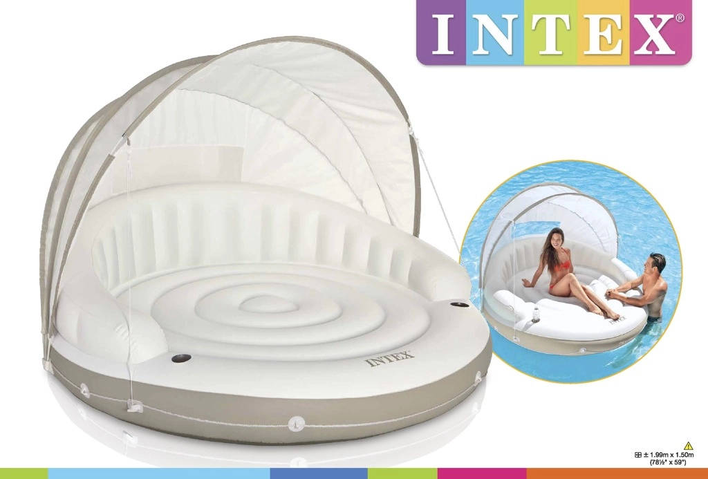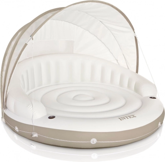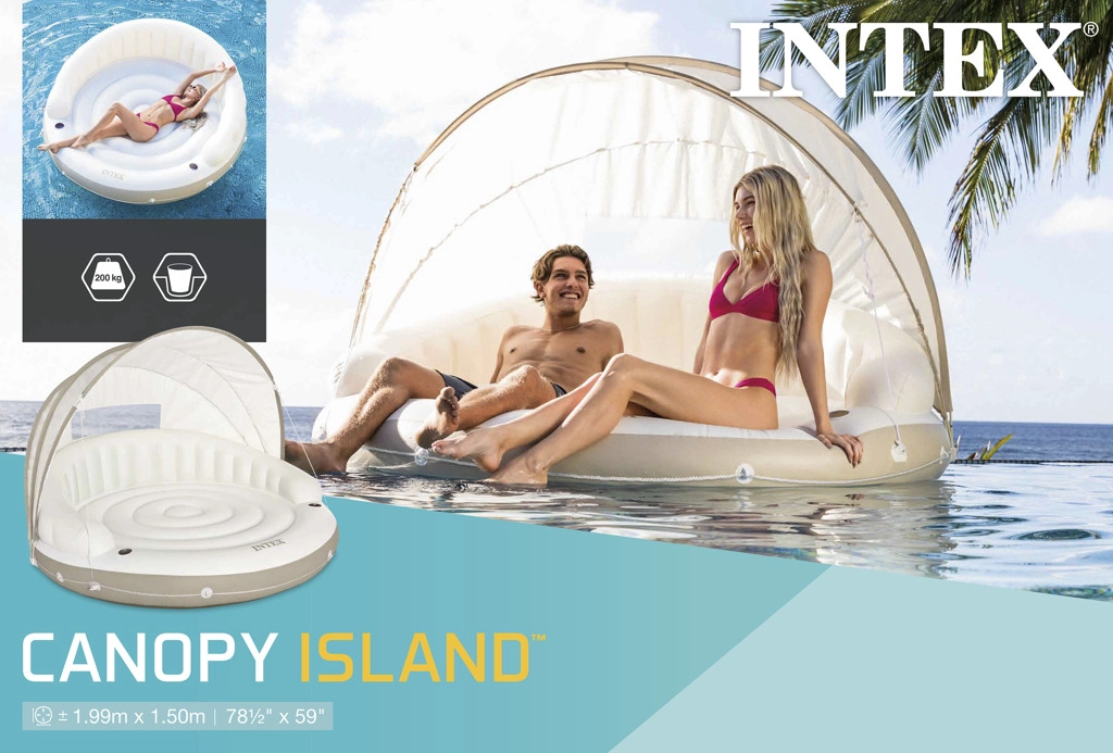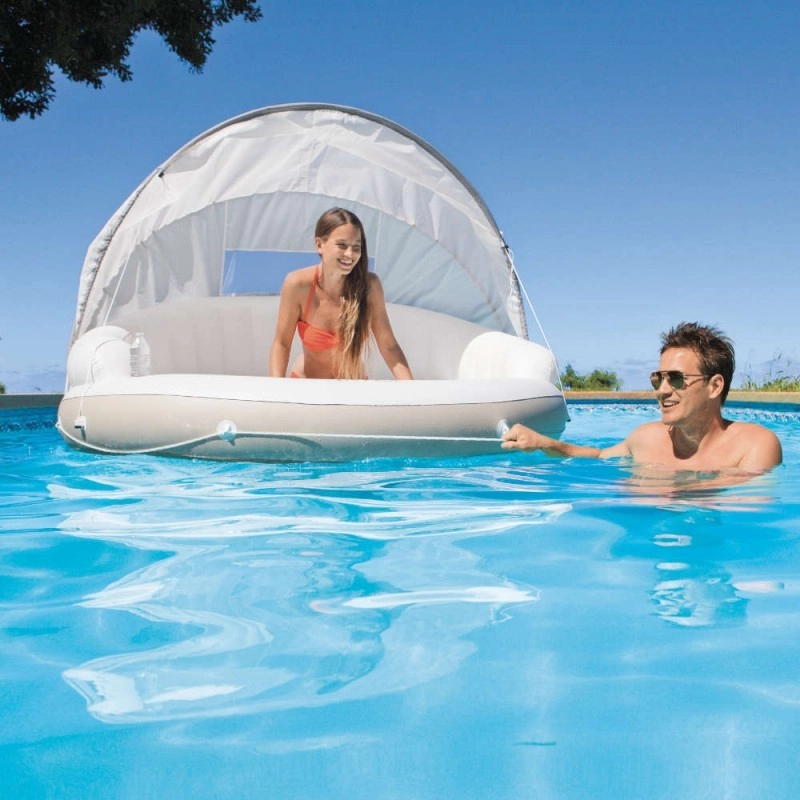 La isla inflable INTEX ofrece el lugar perfecto para relajarte junto al agua. El toldo desmontable y ajustable proporciona una sombra agradable cuando el sol pega fuerte, y puedes retirarlo fácilmente para tomar el sol. La amplia superficie y los respaldos contorneados brindan comodidad durante largas horas de descanso.