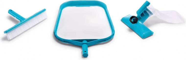 Mantén el agua de tu piscina higiénicamente limpia con el práctico juego de 3 piezas de INTEX. Gracias a la inteligente combinación de cepillo, red y aspirador conectable a la manguera de jardín, eliminarás fácilmente los sedimentos del fondo, las hojas arrastradas y las impurezas finas de las paredes. Manejo sencillo y materiales duraderos garantizan una larga vida útil y un uso cómodo a diario.