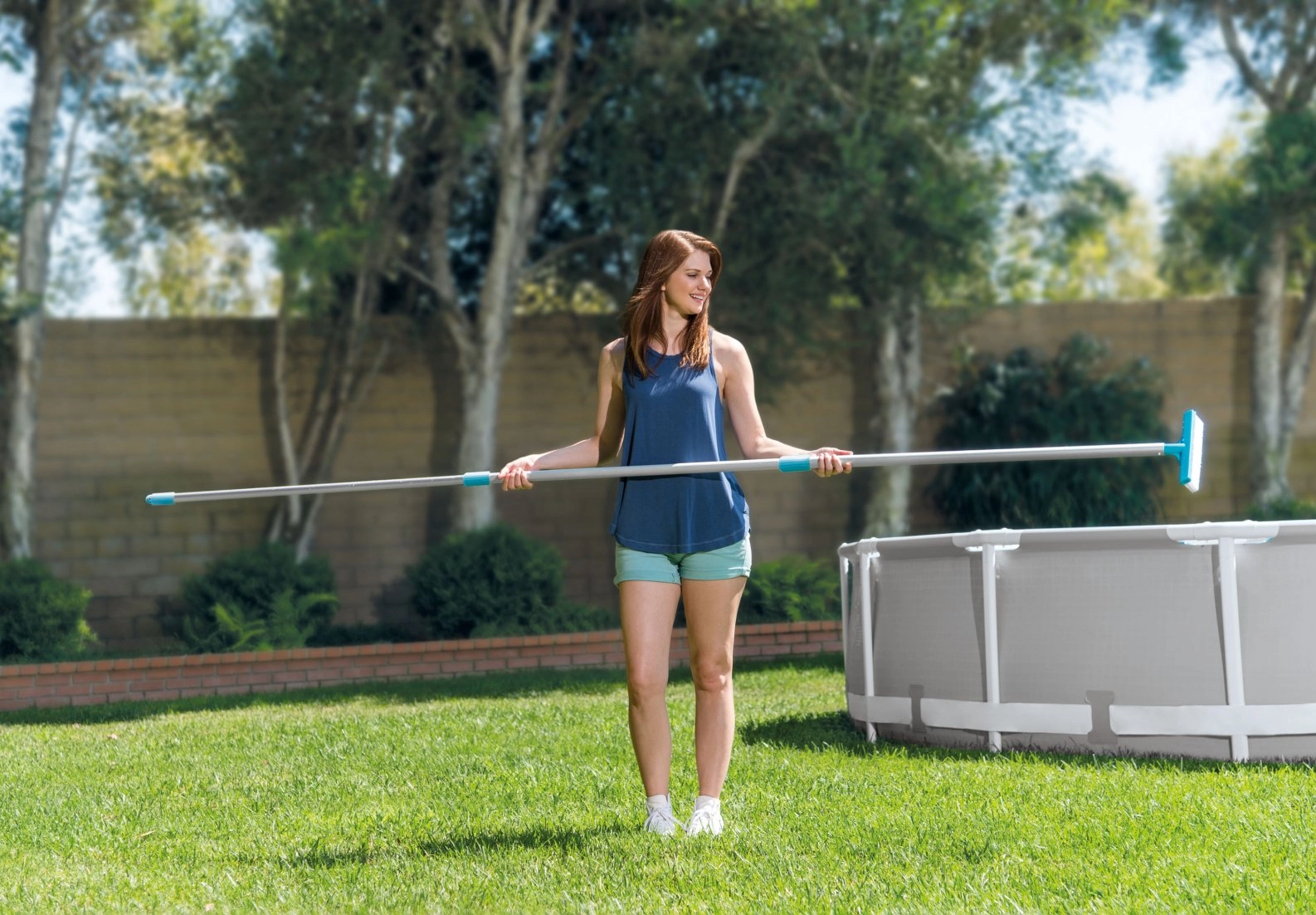 El juego es compatible con la pértiga telescópica de aluminio INTEX (n.º 29054) con un diámetro de acoples de 26,2 mm, por lo que puedes cambiar rápidamente los accesorios según la necesidad. Ideal para piscinas elevadas y enterradas, donde apreciarás una limpieza eficaz sin esfuerzo.