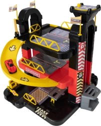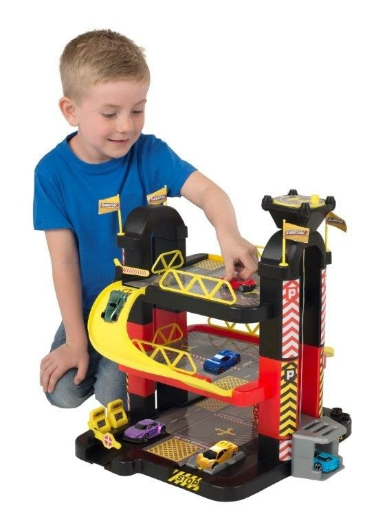 Incluye un ascensor funcional, rampas y plazas de aparcamiento que fomentan el juego creativo e involucran a los niños en la experiencia de juego.