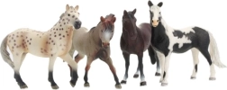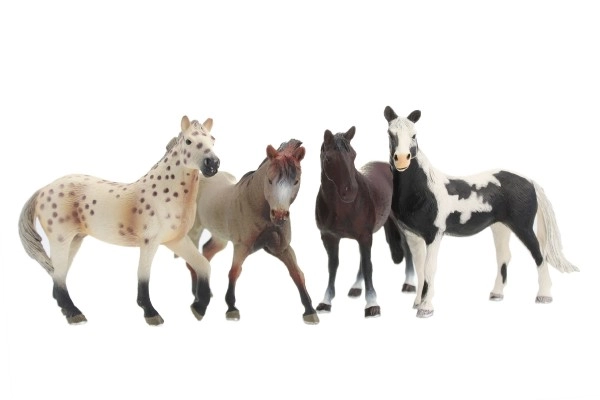 Cuatro figuras de caballos de plástico, cada una con un color diferente, lo que permite a los niños crear diversas escenas e historias.