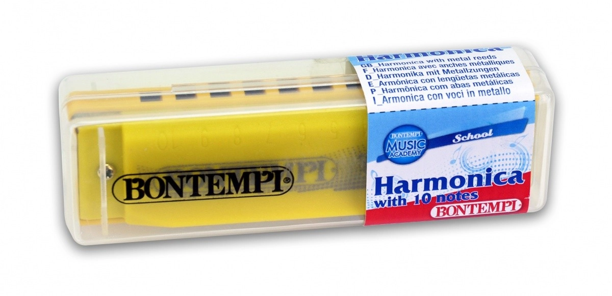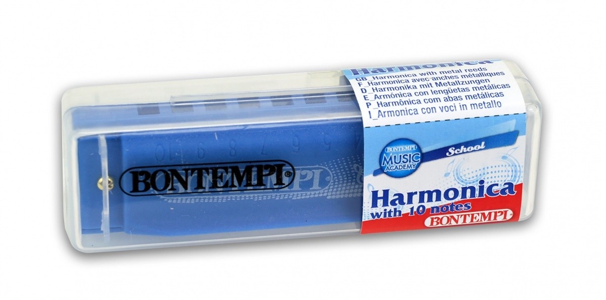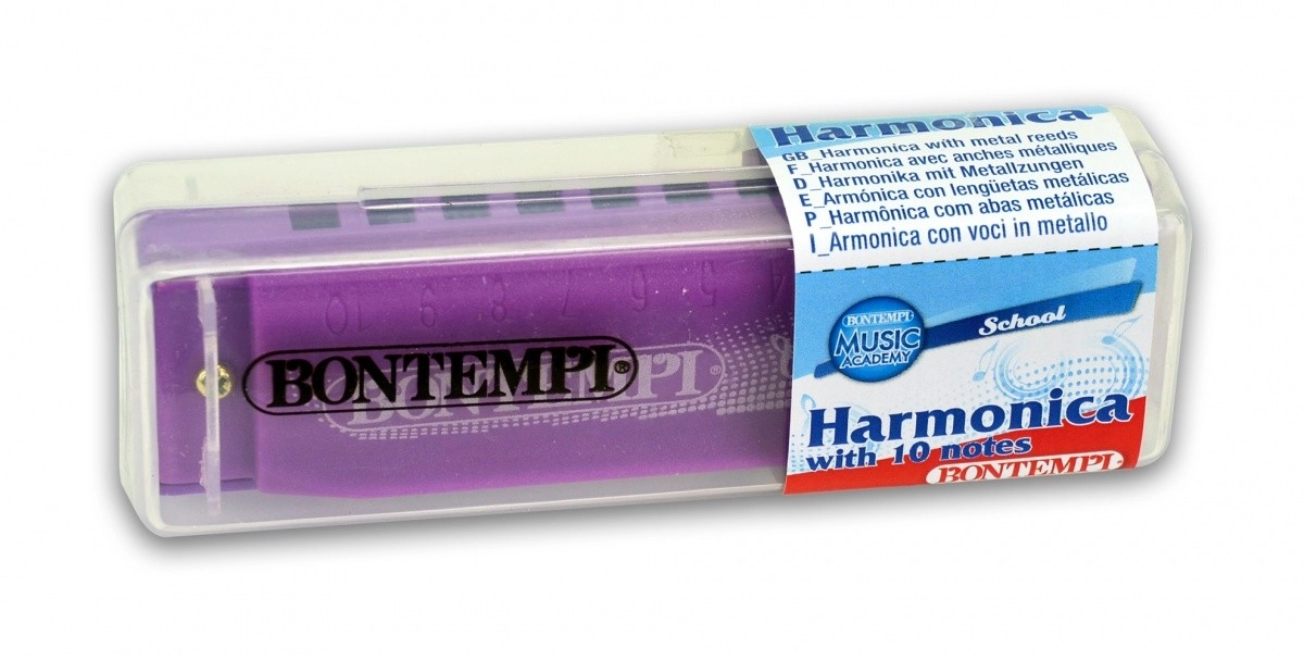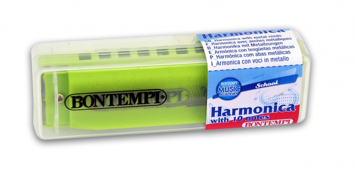 Armónica de boca ligera y compacta con 10 tonos de la marca BONTEMPI, ideal para principiantes y niños. Su cuerpo de plástico resistente ofrece un sonido fiel, manejo sencillo y uso escolar/educativo. Disponible en varios colores, perfecta para los primeros pasos musicales y para divertidos ejercicios de ritmo y respiración.