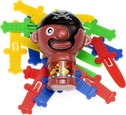 Un juego pirata favorito para niños y adultos. Coloca al pirata en el barril, reparte las espadas e insértalas por turnos en los orificios. Uno de ellos activará la sorpresa: el pirata salta y hace reír a todo el grupo. Ideal para noches en familia y fiestas infantiles; fomenta el reflejo y la comunicación en equipo.