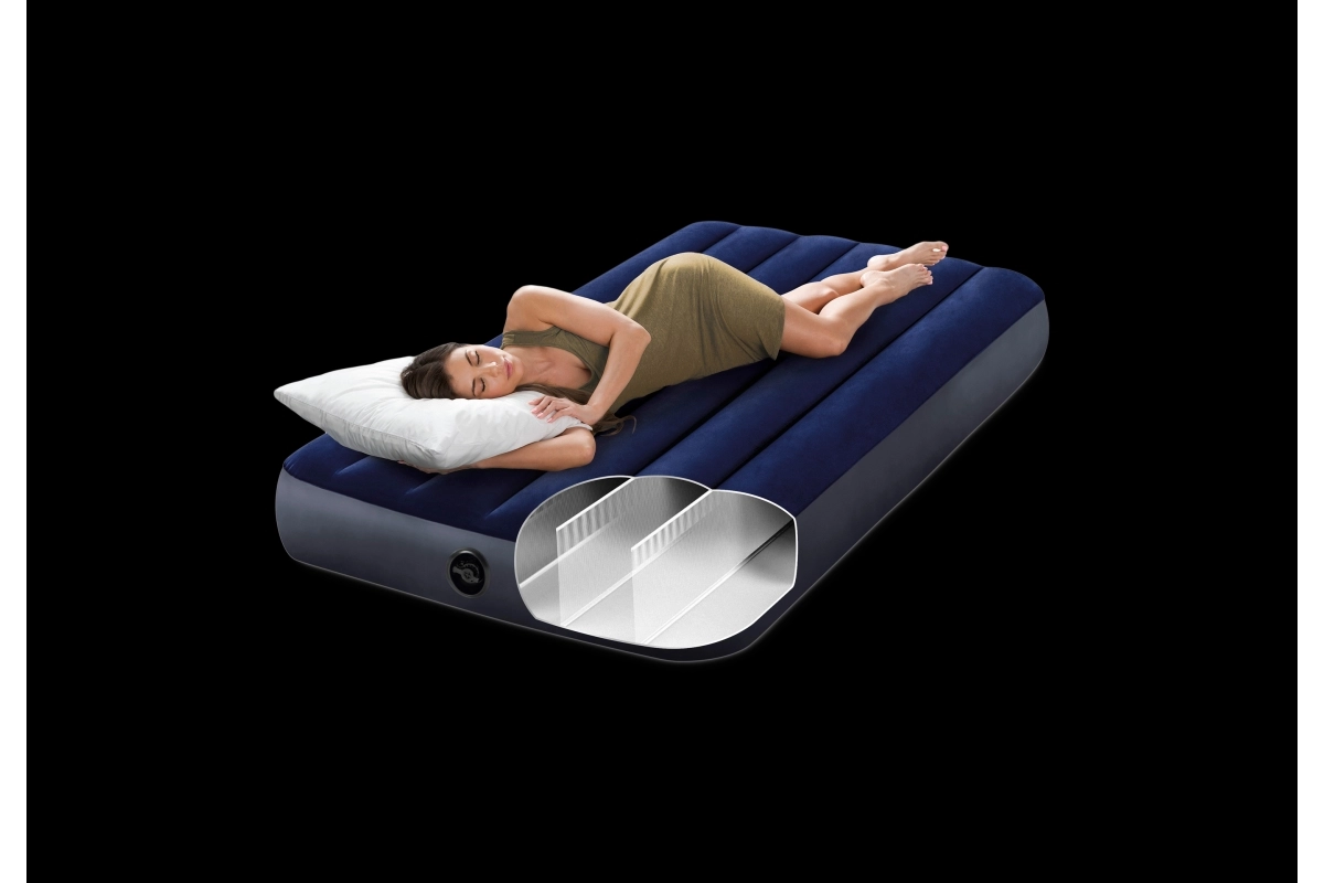 Disfruta de un sueño tranquilo en cualquier lugar gracias al colchón INTEX con altura de 25 cm para un descanso cómodo y un levantarse más fácil. La construcción con Dura‑Beam Fiber utiliza miles de fibras resistentes que aumentan la estabilidad y la resistencia a la deformación. La agradable superficie de terciopelo es suave al tacto y resistente al agua, por lo que se mantiene fácilmente.
