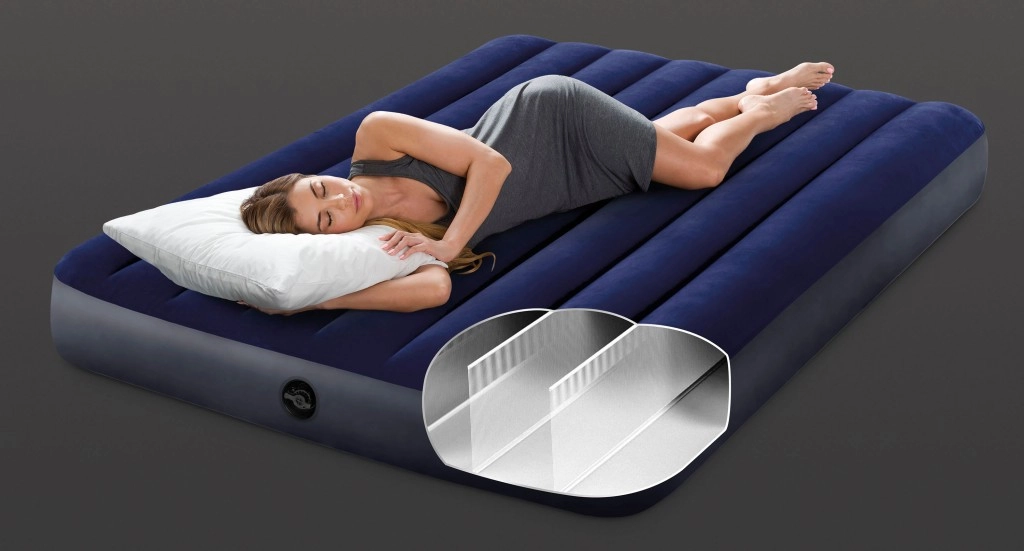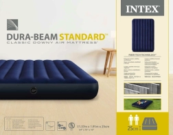 El colchón inflable INTEX con tecnología Dura-Beam Fiber garantiza un sueño saludable gracias a la posición anatómica de la columna durante el descanso. El colchón está fabricado en PVC resistente y la parte superior está cubierta con un material aterciopelado e impermeable. Gracias a la válvula Boston, el colchón se puede desinflar rápidamente y almacenar con facilidad.