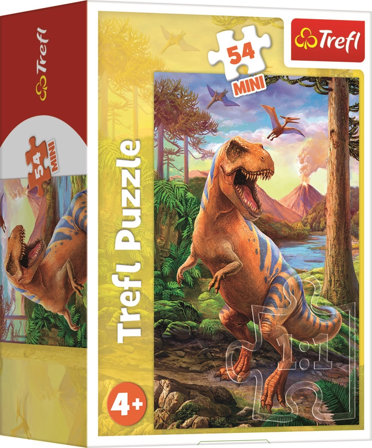 El atractivo minipuzzle de dinosaurios ofrece a los niños la posibilidad de montar imágenes de cuatro dinosaurios diferentes. Cada paquete contiene 54 piezas y está especialmente diseñado para preescolares, que así ejercitan tanto la paciencia como la atención.