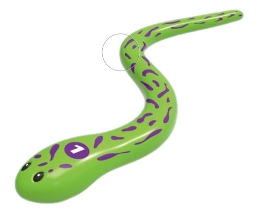 La serpiente amarilla, azul, naranja y verde destacan en el agua, por lo que los niños las encuentran rápido y el juego fluye.