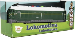 Esta robusta locomotora de plástico ofrece a los niños una experiencia de conducción auténtica. Gracias a los efectos de luz y sonido, parece una máquina real y el volante de inercia garantiza un movimiento suave y continuo. Ideal como regalo para niños a partir de 3 años.