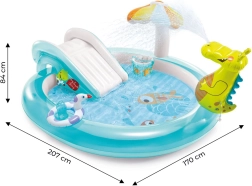 Te ofrecemos la solución ideal para los calurosos días de verano: la piscina inflable infantil mundo de fantasía de INTEX, que brinda a tus niños posibilidades ilimitadas de diversión acuática. Sus grandes dimensiones de 201 x 170 cm aseguran espacio suficiente para jugar y la suave zona de aterrizaje inflable garantiza seguridad al usar el tobogán. La piscina cuenta con una válvula de desagüe para vaciar el agua rápidamente.