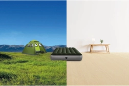 Gracias a la práctica válvula 2 en 1, el colchón se infla y desinfla fácil y rápidamente en cuestión de minutos. Una vez desinflado, es compacto y ligero, por lo que se guarda fácilmente en un armario, bolsa de viaje o maletero. Una gran solución para invitados, acampada, casa de campo y jardín.