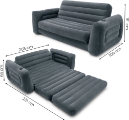 El sofá de terciopelo Intex con dimensiones de 231x203x66 cm es ideal para dos personas. Fabricado en material PVC resistente y cubierto con suave terciopelo, se desinfla fácilmente.