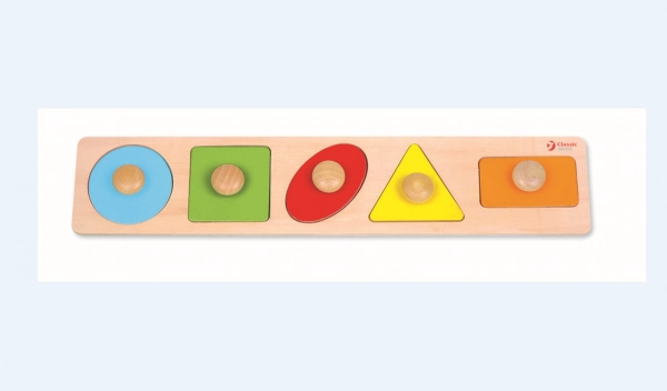 Cada forma tiene un color diferente y un botón para facilitar el agarre y la manipulación.