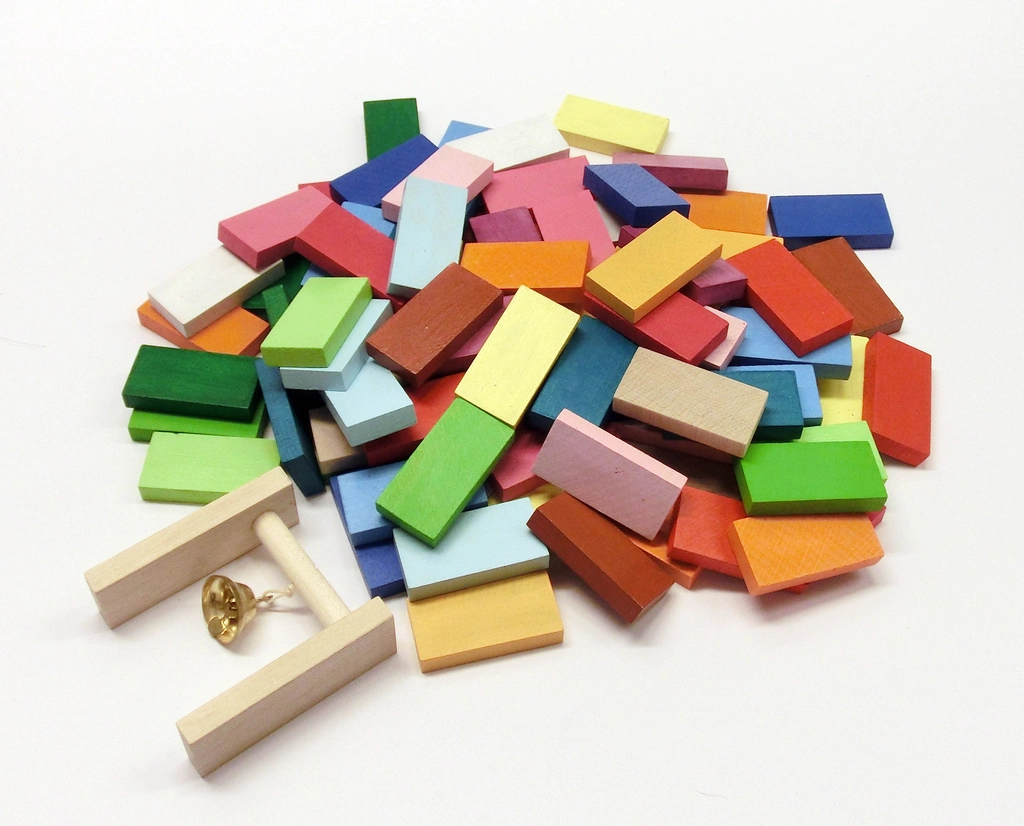 Con 95 piezas de madera que pueden combinarse de forma variable, los niños desarrollan su creatividad y motricidad fina.