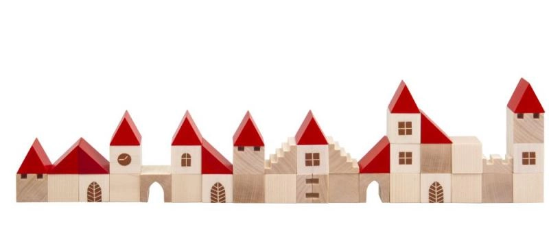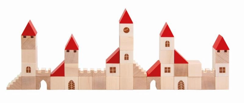 Este juego de construcción de madera incluye 100 piezas de diferentes formas y tamaños, que permiten a los niños crear su propio pequeño pueblecito. Gracias a su diseño colorido con tejados rojos y madera natural, no solo es bonito, sino también plenamente funcional para el juego imaginativo. Ayuda a desarrollar la motricidad fina y la percepción espacial en los niños.