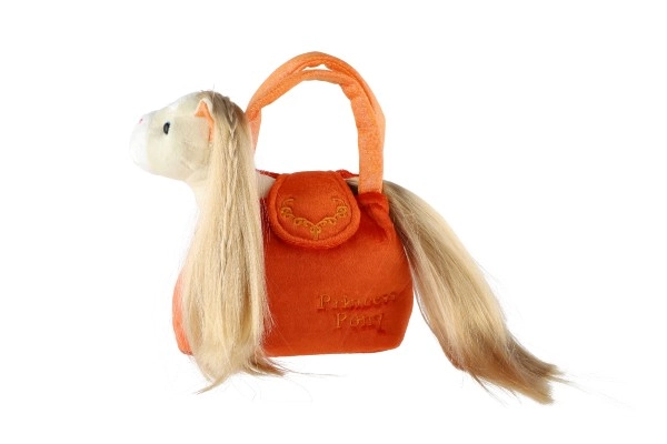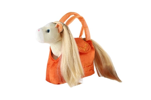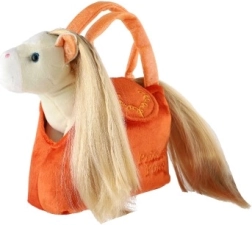 Este bolso de peluche naranja oculta en su interior un adorable caballito que se puede sacar y volver a guardar en cualquier momento. La melena larga y suave invita a peinar y trenzar, fomentando la motricidad fina y la creatividad.