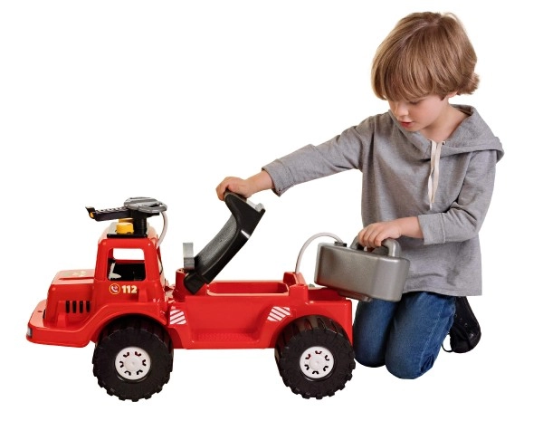 Gracias al centro de gravedad bajo, las ruedas anchas y el manillar ergonómico, la conducción es estable y confortable. El correpasillos favorece el desarrollo de la motricidad gruesa, la coordinación y la confianza del niño. Los detalles realistas, el número 112 y los estampados “FIRE DEPARTMENT” refuerzan su aspecto auténtico.