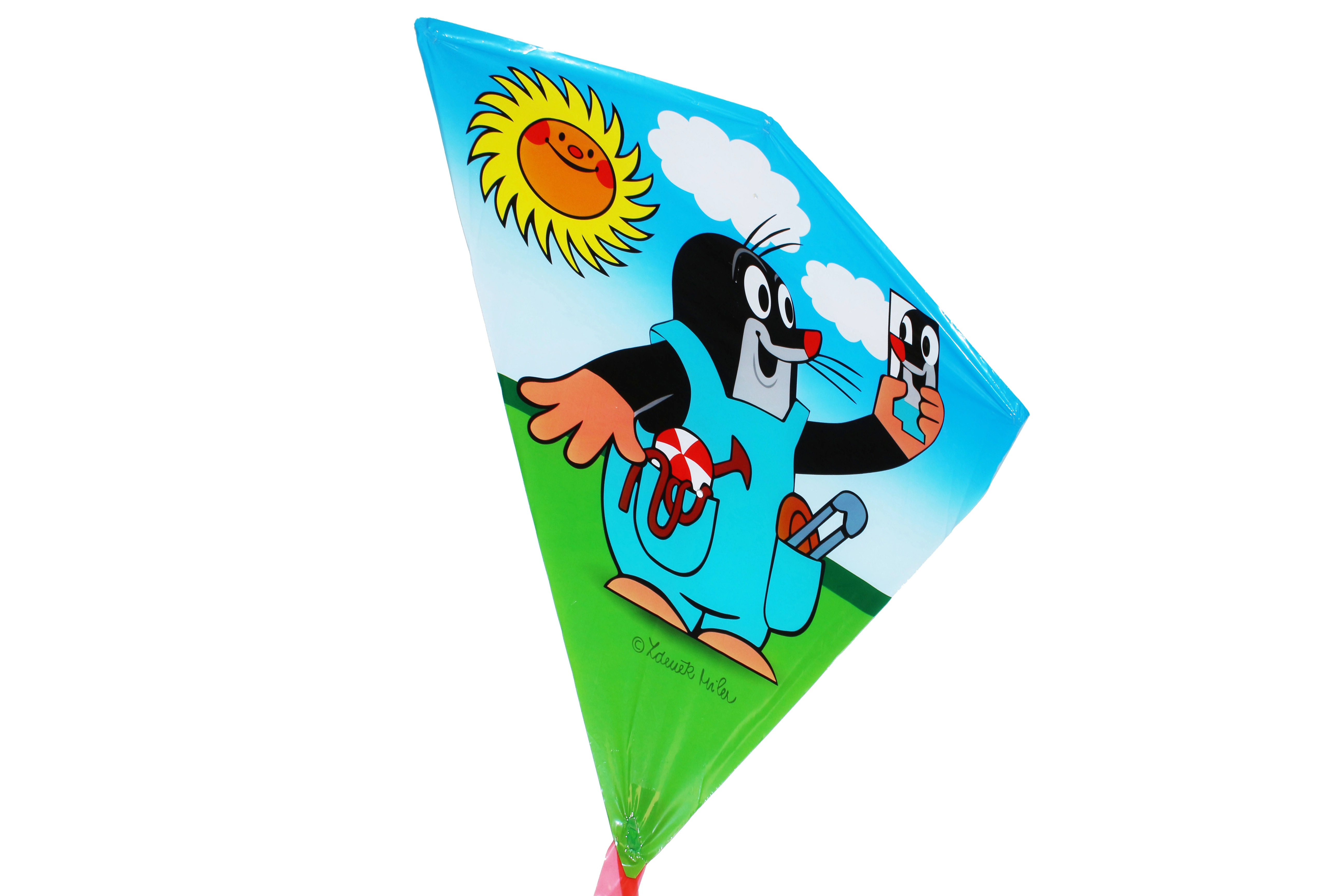 Cometa voladora infantil con el popular personaje Topo (Krtek). Diversión otoñal ideal para niños a partir de 3 años.