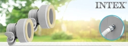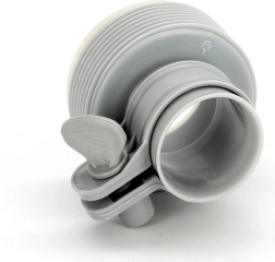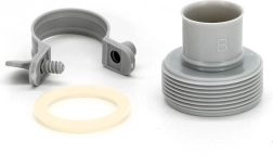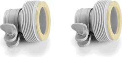 El adaptador sirve para conectarse al pasamuros de la piscina (por un lado, diámetro 32 mm) y para conectar una manguera con unión roscada (por el otro lado, diámetro 38 mm).