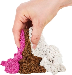 La fórmula especial de Kinetic Sand se puede apretar, cortar y moldear fácilmente, ideal para bolas de helado y postres realistas.