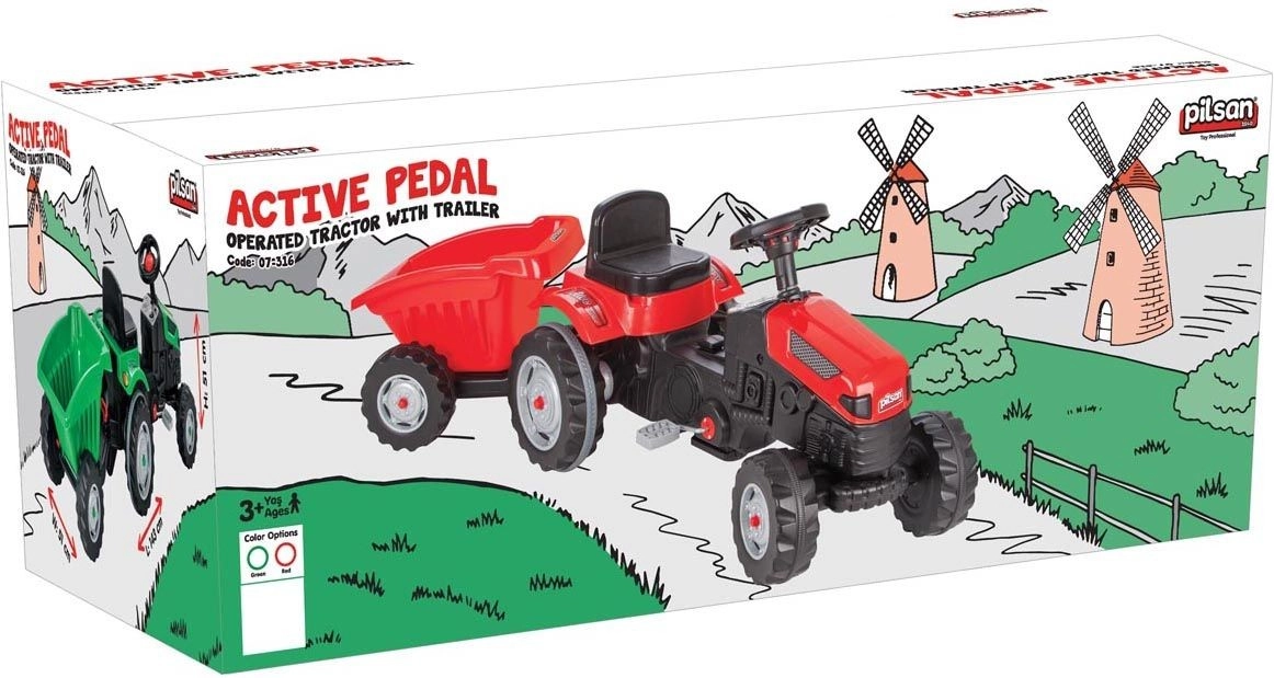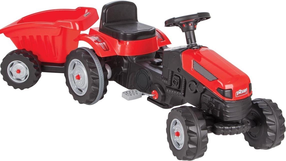 El tractor a pedales Pilsan en un atractivo color rojo ofrece a los niños una experiencia de conducción auténtica. La estructura estable, el asiento cómodo y el remolque acoplable convierten a este juguete en un gran compañero para el jardín, el parque infantil y el patio. Con el sencillo manejo del volante, los niños disfrutarán de una conducción “realista” y de mucha diversión segura.
