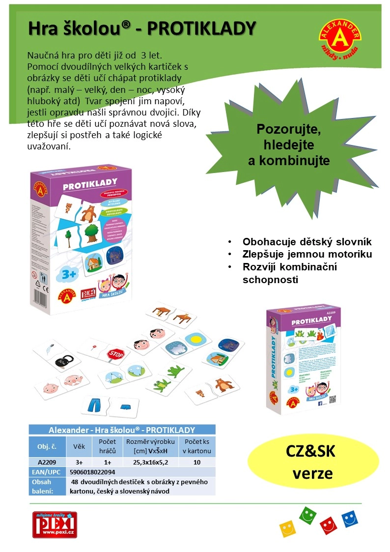 - 48 tarjetas de dos piezas con ilustraciones, manual en checo y eslovaco