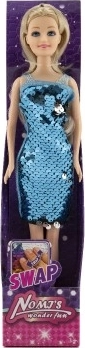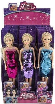 Esta elegante muñeca está lista para una fiesta o un desfile de moda. El vestido adornado con lentejuelas reversibles ofrece diversión inmediata: con un simple pase de mano cambias el efecto de color y creas un nuevo estilo en segundos. El cuerpo rígido de plástico permite una postura estable y un cambio de ropa sencillo.