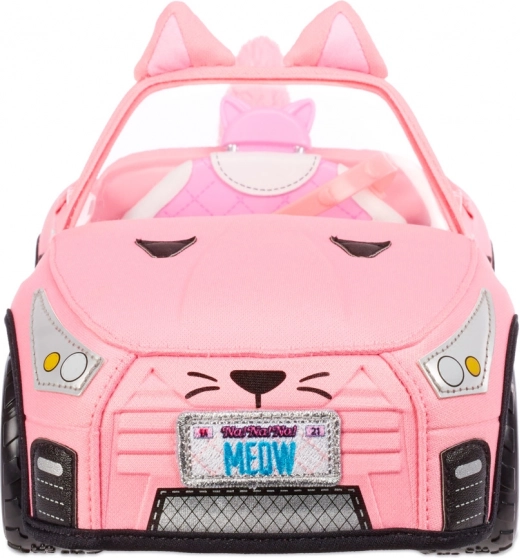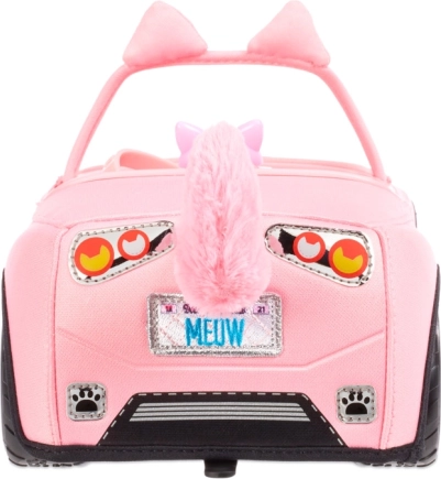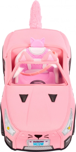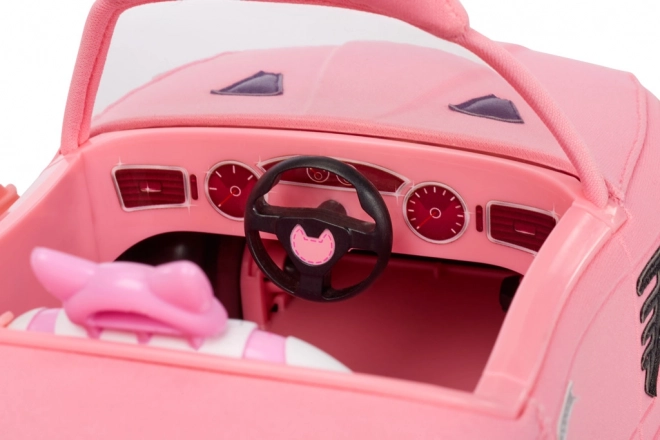 El estampado único y detalles como las orejitas o la matrícula "MEOW" convierten al cabriolet en un accesorio con estilo para cualquier muñeca.