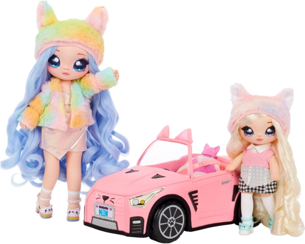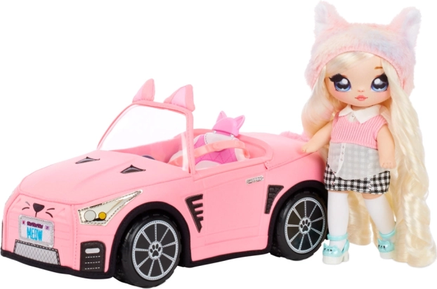 Te presentamos el Na! Na! Na! Surprise Cabriolet Estiloso, ¡un medio de transporte único para los viajes de tus muñecas favoritas! Este cabriolet combina un diseño a la moda con funciones prácticas para la máxima diversión y un juego creativo.