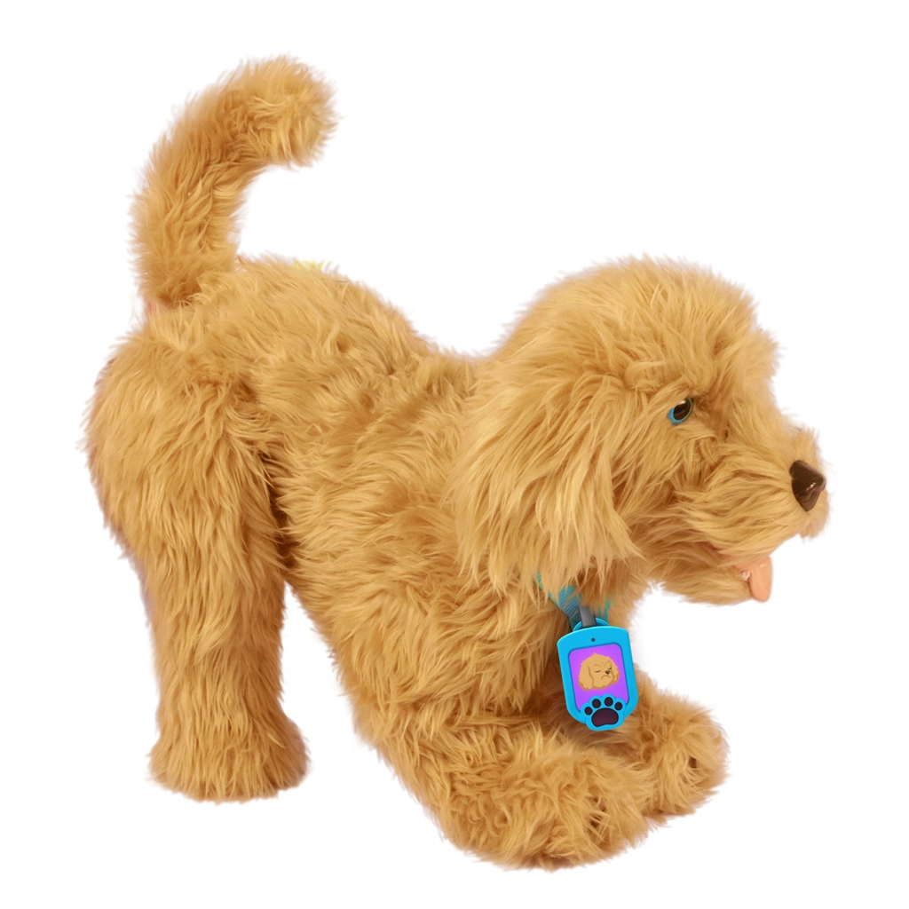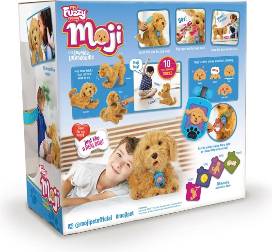 Conoce a Moji, un labradoodle de peluche que cobra vida gracias a más de 150 reacciones interactivas. Aprende 10 trucos, responde a órdenes de voz y al tacto y, gracias a su collar inteligente con pantalla, te muestra sus necesidades y su estado de ánimo. En la caja encontrarás un cuenco, un cepillo y un juguete de nudo para tirar para un cuidado y diversión completos.