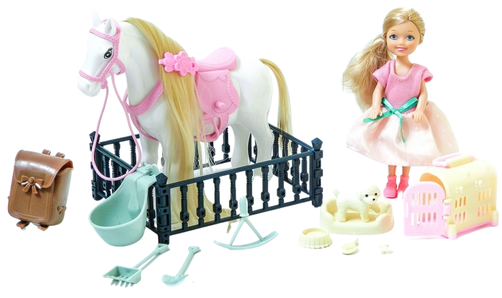 - Caballito, muñeca, perrito, corral, camita y otros accesorios