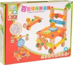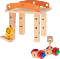 Este set de madera de alta calidad permite a los niños montar una banqueta de taller y otros modelos originales. Gracias a los tornillos, tuercas y engranajes, exploran los principios de la mecánica simple, entrenan la concentración y la destreza. La banqueta es estable y, gracias al sistema pensado de orificios y uniones, ofrece multitud de combinaciones.