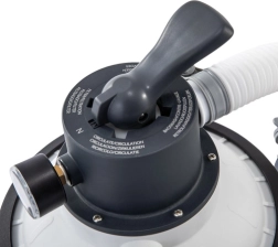 La construcción robusta con depósito resistente y anticorrosión, manómetros legibles y cesta de prefiltro para capturar partículas más grandes garantizan una larga vida útil y un funcionamiento sin problemas. La bomba viene premontada de fábrica para una instalación rápida y es compatible con una amplia gama de piscinas INTEX.