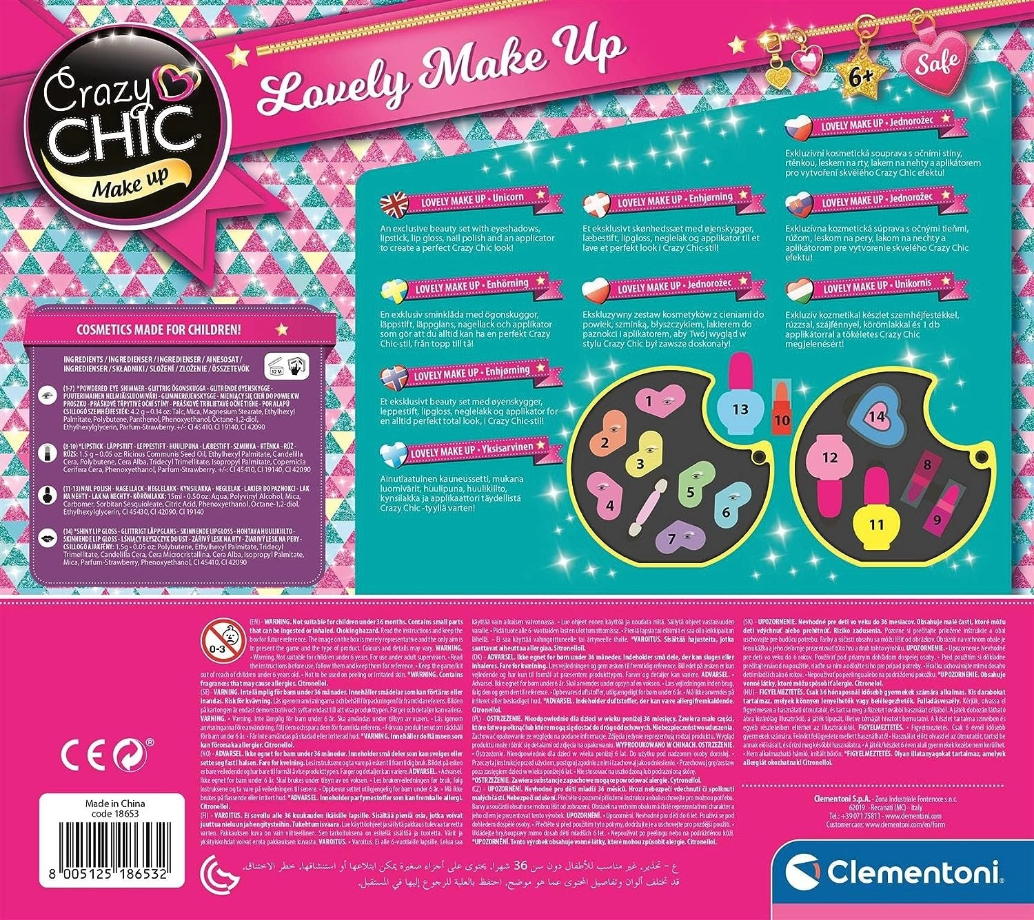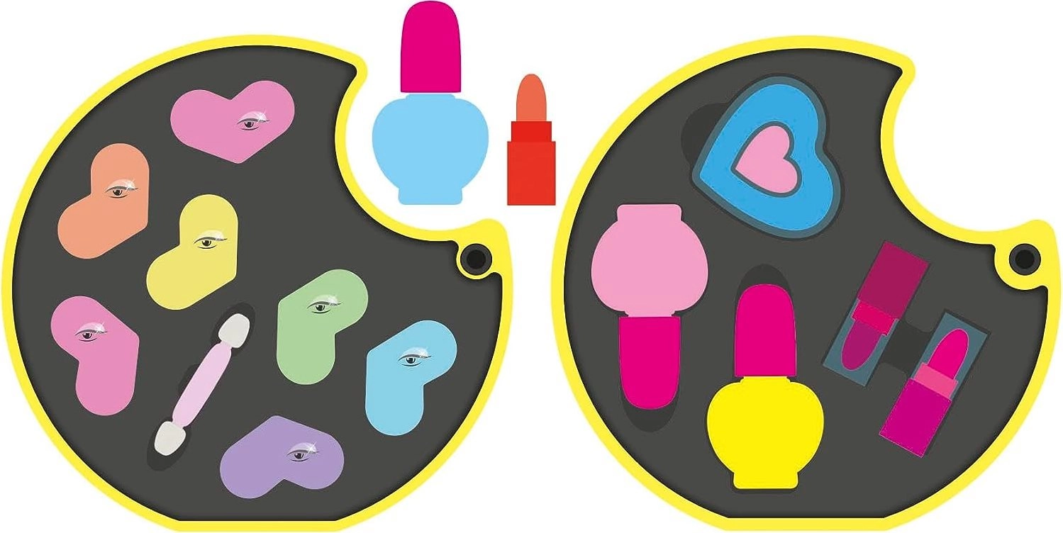 - 7 sombras de ojos, aplicador, esmaltes de uñas, brillo de labios, 2 barras de labios